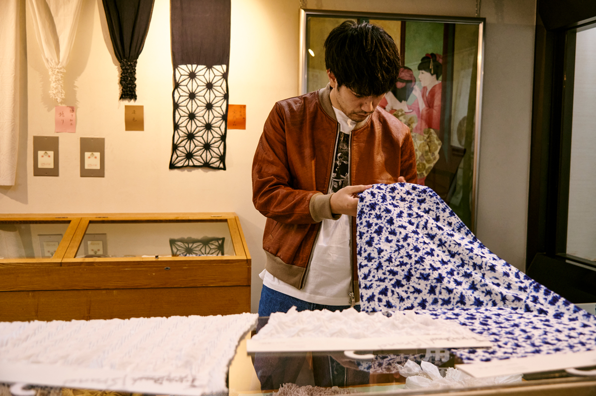 愛知県名古屋市の伝統工芸「有松紋」。有松絞特有の”くくり””絞り””染め”の技法が仕上げた伝統と現代の感性が交差する新たなレザーアイテムを作り上げました。